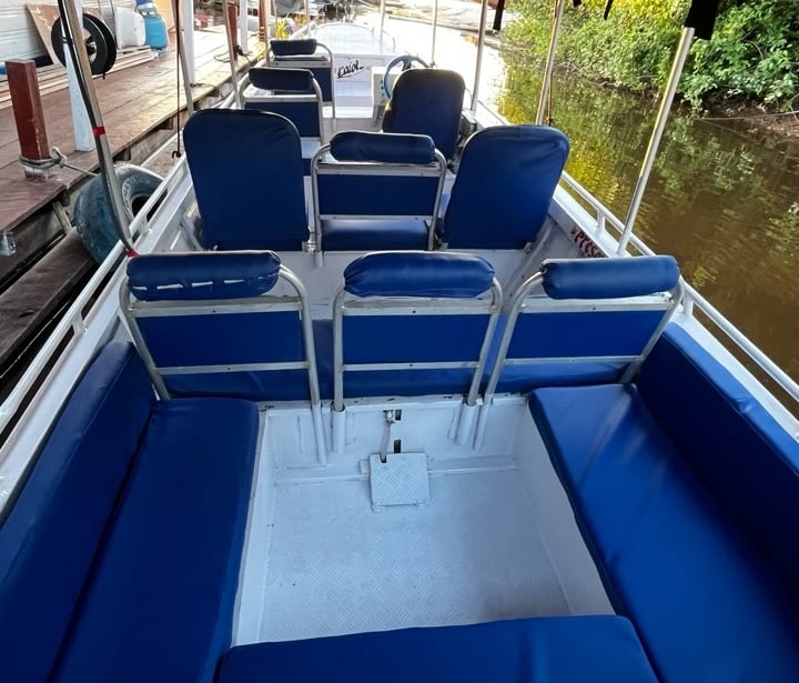 A Lancha PSA Isis é perfeita para quem busca uma experiência mais dinâmica e confortável na Amazônia, com rapidez nos deslocamentos e total privacidade.