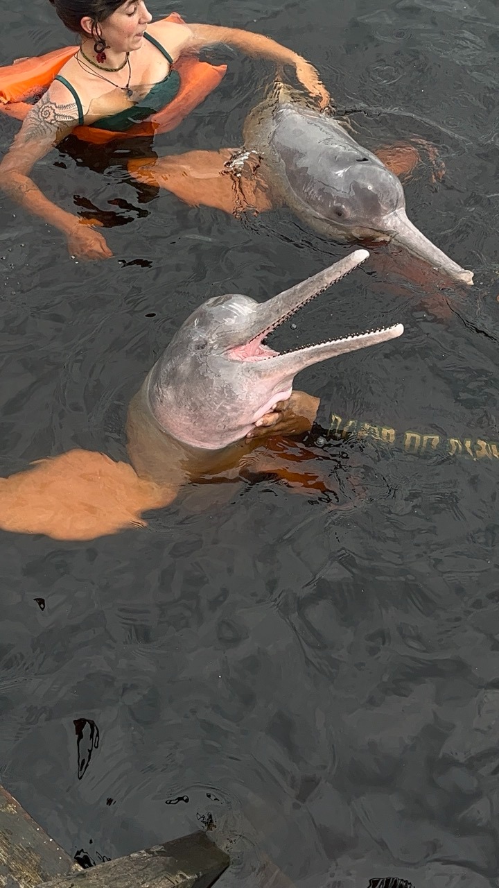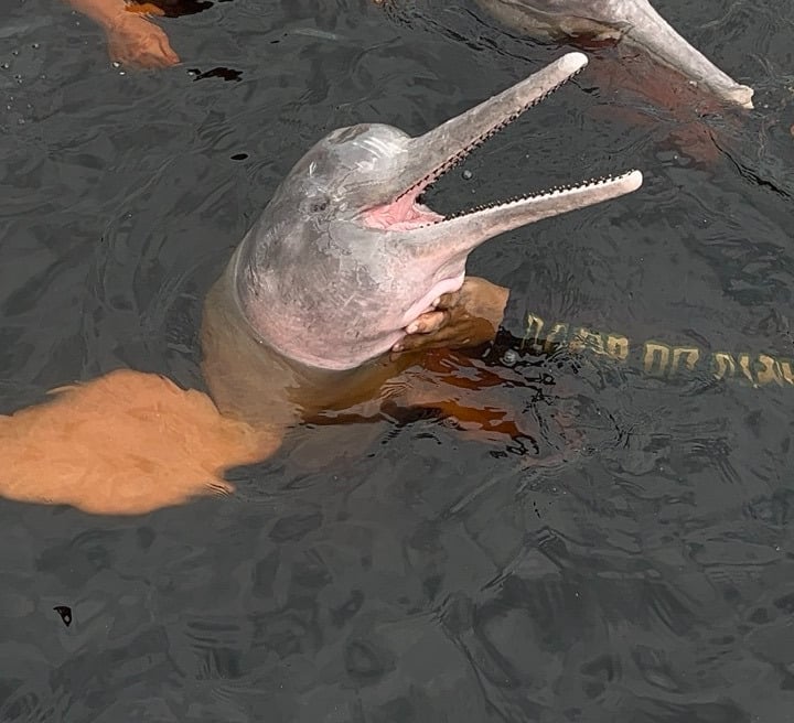 O dia começa com uma das experiências mais encantadoras da região: interação com os botos.